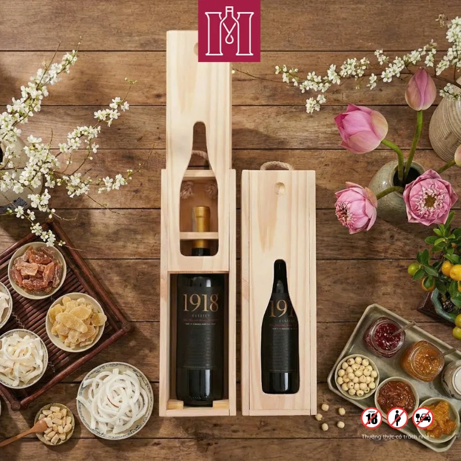 Combo rượu vang đỏ Chile 1918 Classic nhập khẩu kèm hộp gỗ thông đôi nắp trượt